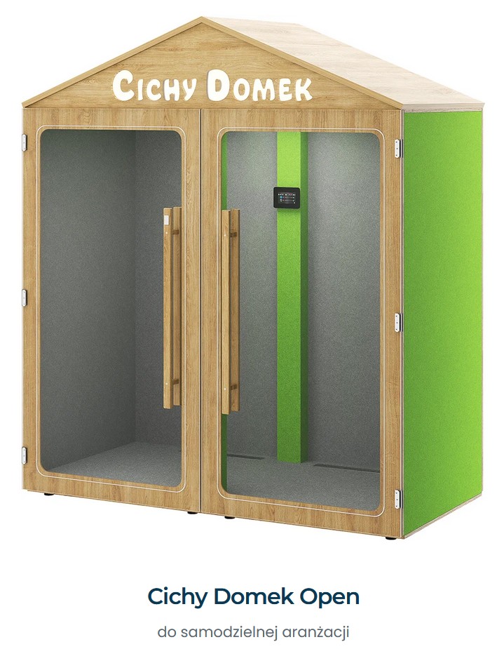 Cichy Domek wyraźnie tłumi dźwięki – nie tylko od świata zewnętrznego, ale i wewnątrz, co daje dziecku realne poczucie odcięcia od chaosu. Sprawdza się doskonale w świetlicach, bibliotekach, salach integracyjnych i przedszkolach.