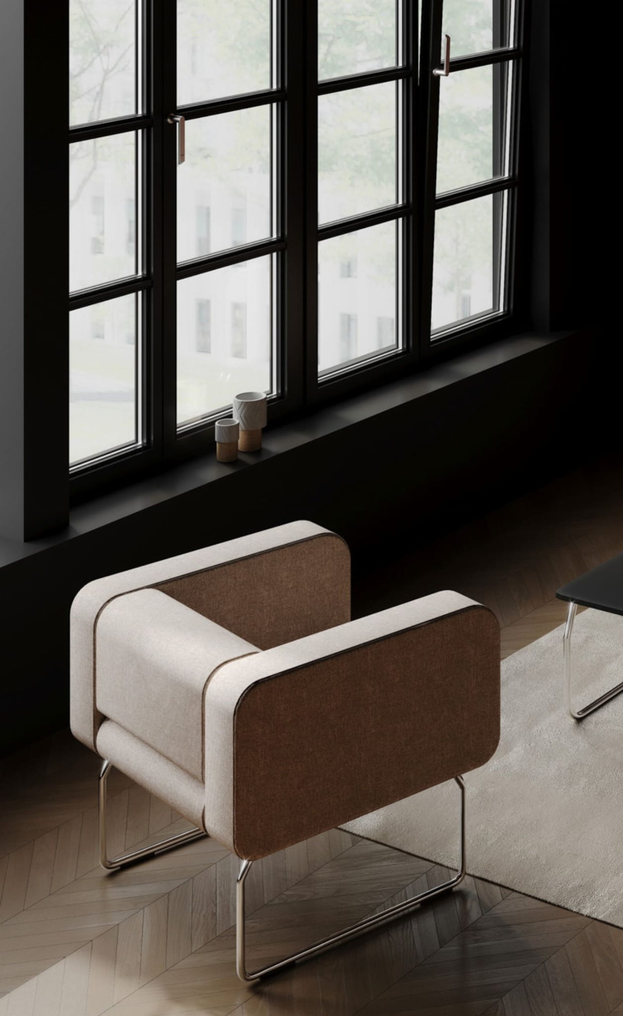 Rozległe płaszczyzny siedzisk i oparć nadają wnętrzu poczucie spokoju, neutralizują napięcia związane z przepływem ludzi we wnętrzach publicznych i ułatwiają pozytywne relacje pomiędzy nieznanymi sobie ludźmi.
