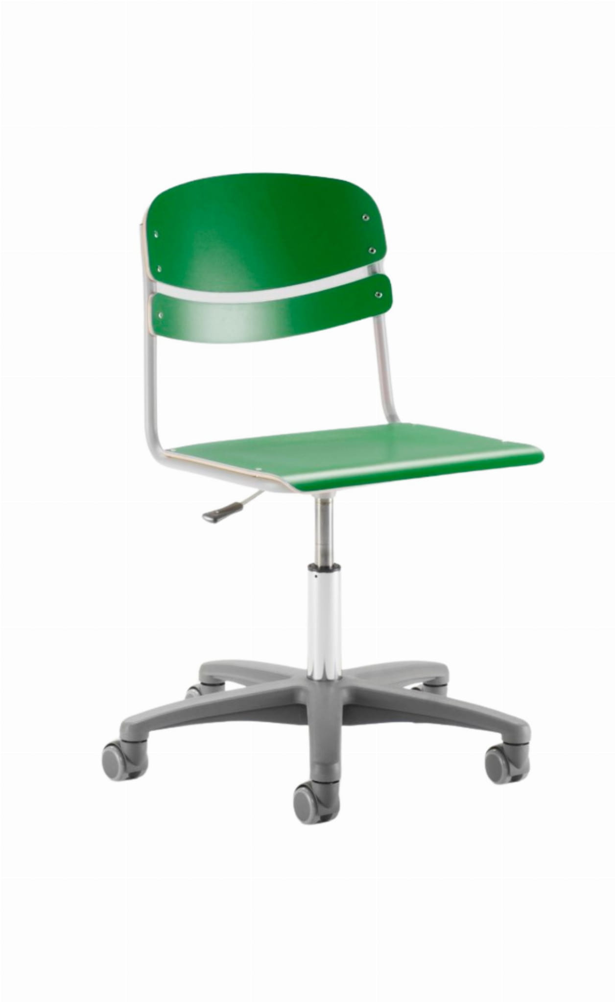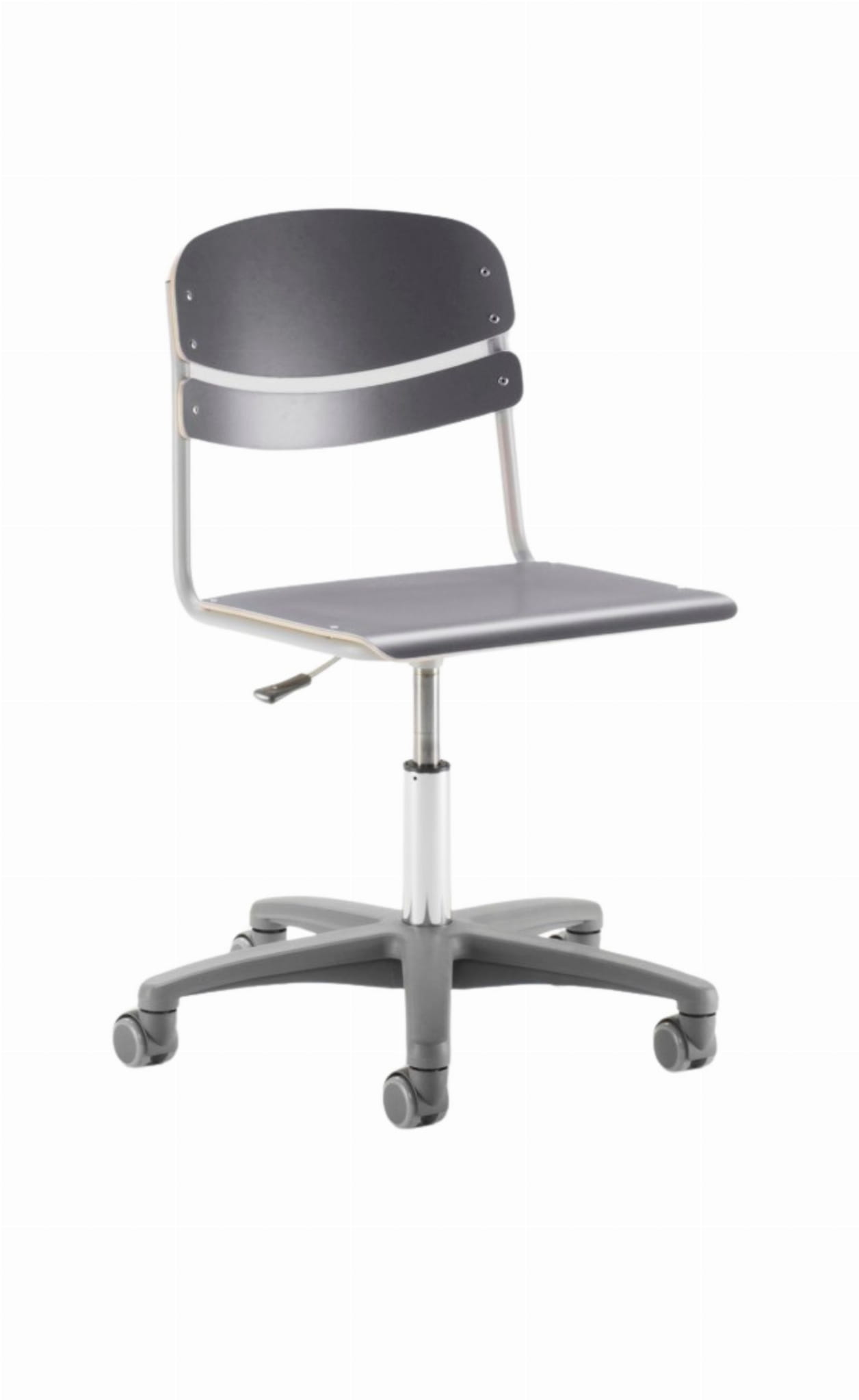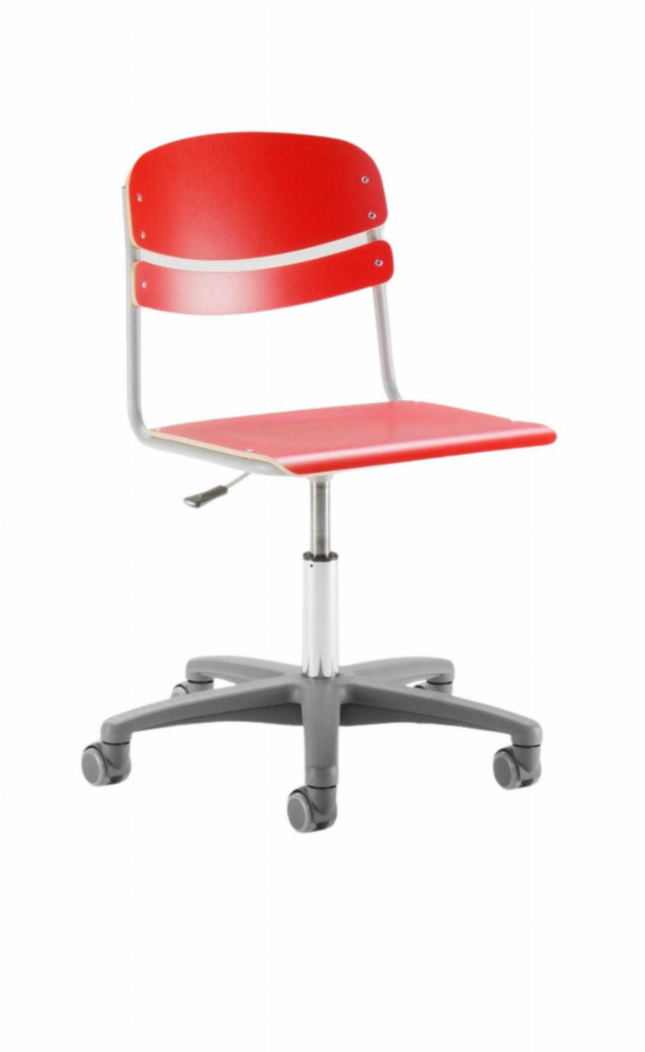 Sprężyna gazowa umożliwia bezstopniową regulację wysokości, umożliwiając ergonomiczne pozycje siedzenia dla użytkowników. Niską wersję krzesła Mac można uzyskać z kółkami lub obrotowymi podstawkami.