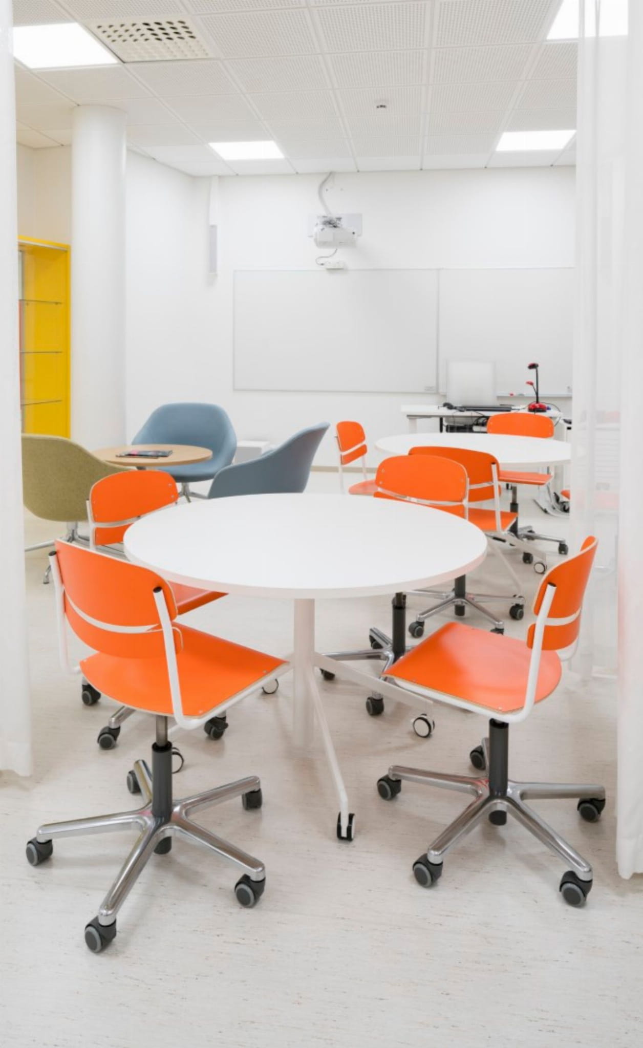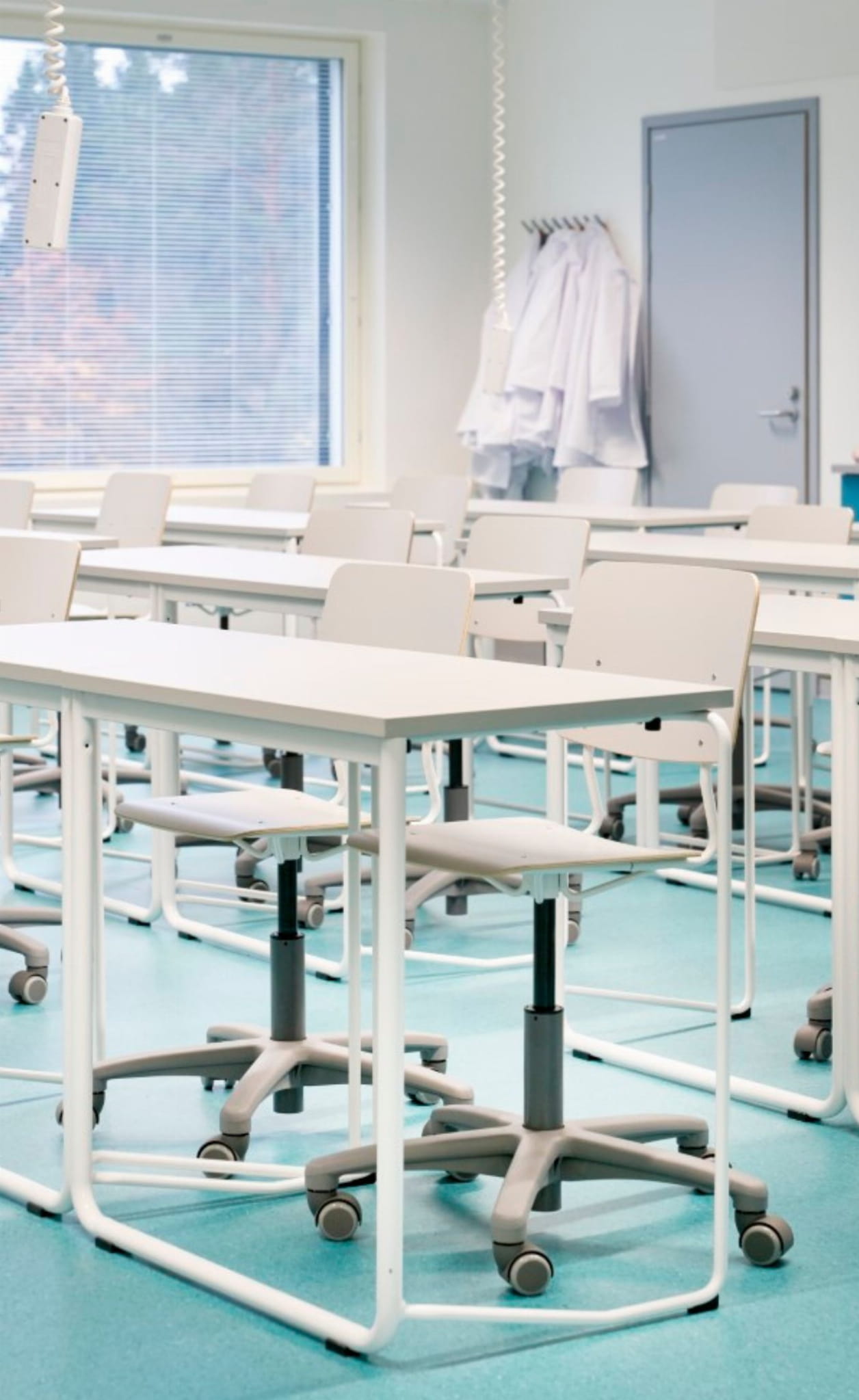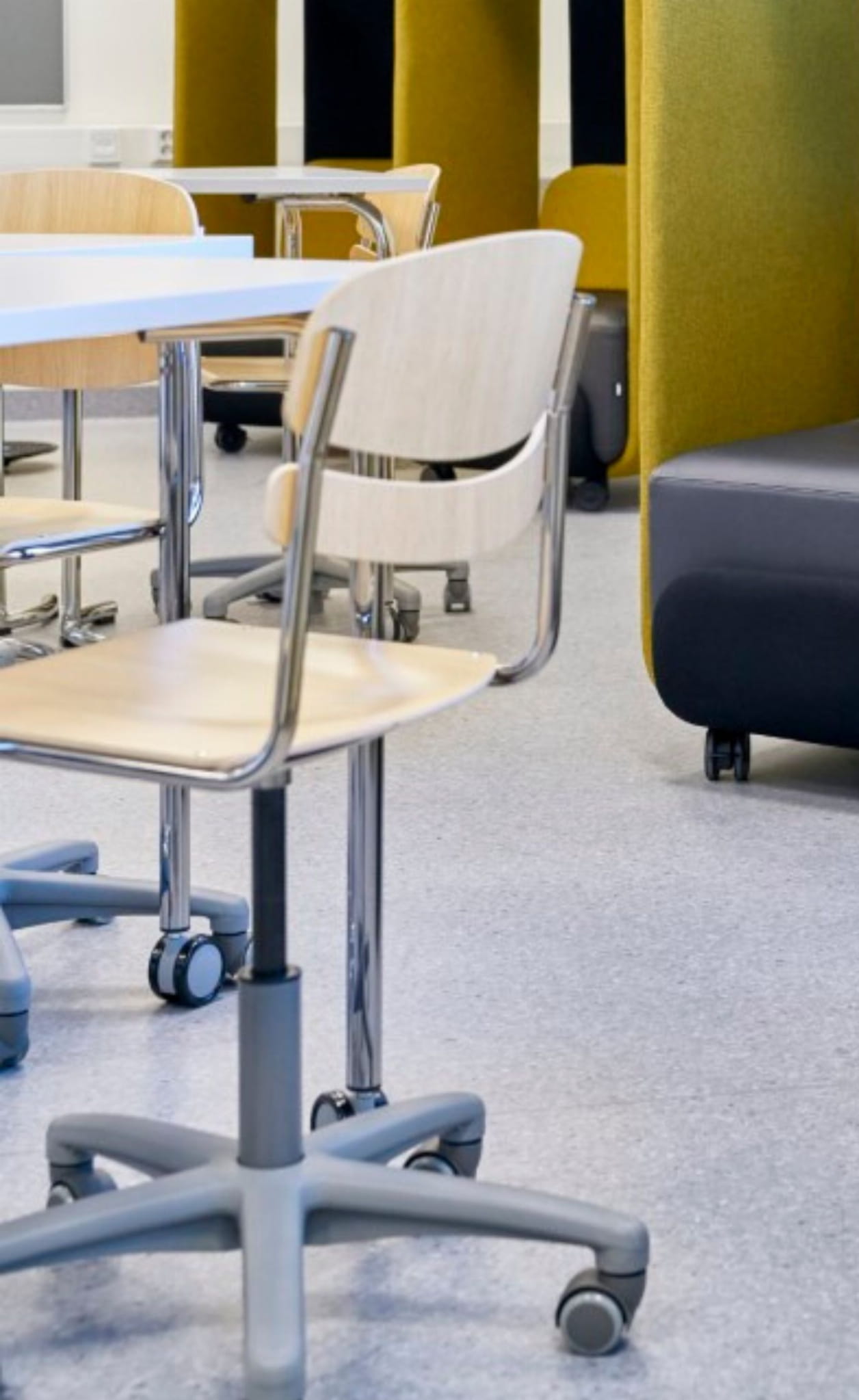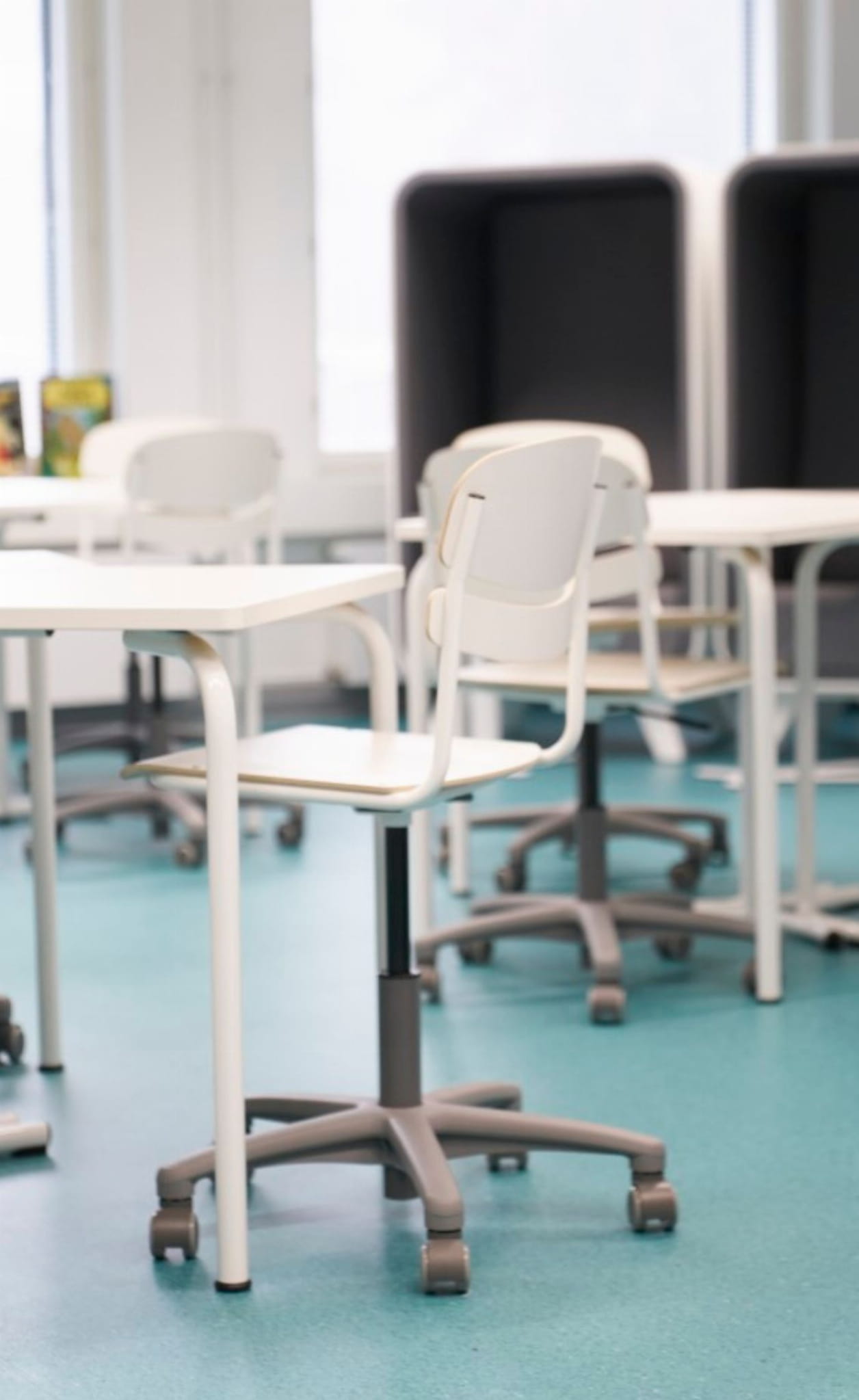 Sprężyna gazowa umożliwia bezstopniową regulację wysokości, umożliwiając ergonomiczne pozycje siedzenia dla użytkowników. Niską wersję krzesła Mac można uzyskać z kółkami lub obrotowymi podstawkami.