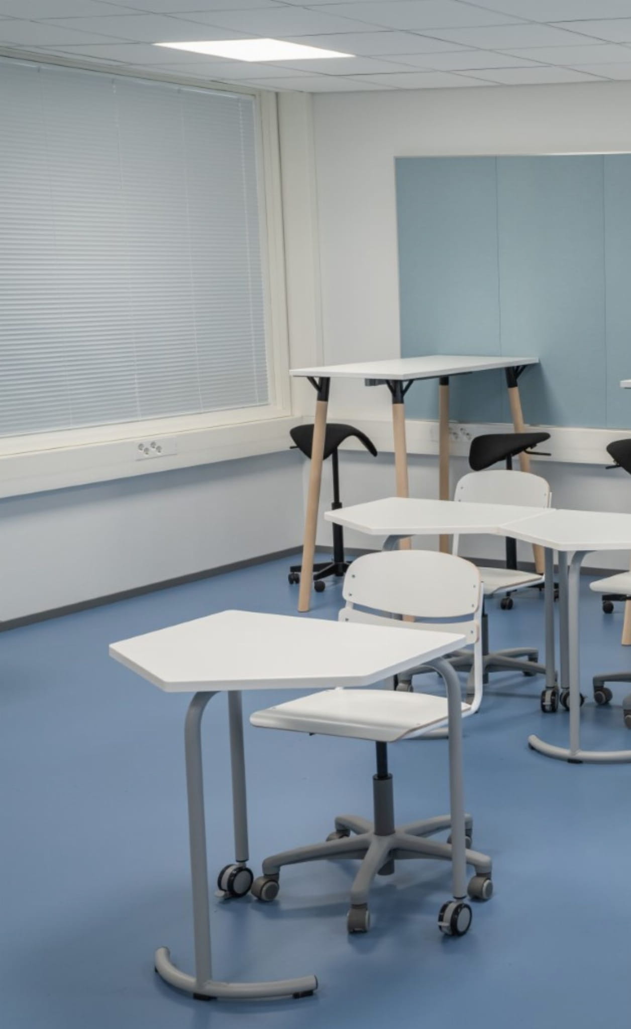 - laminat (biały, czarny, jasnoszary lub ciemnoszary, brzoza, buk, dąb) lub plastik (bordowy, szary, czerwony, buk, niebieski, zielony, brzoza).