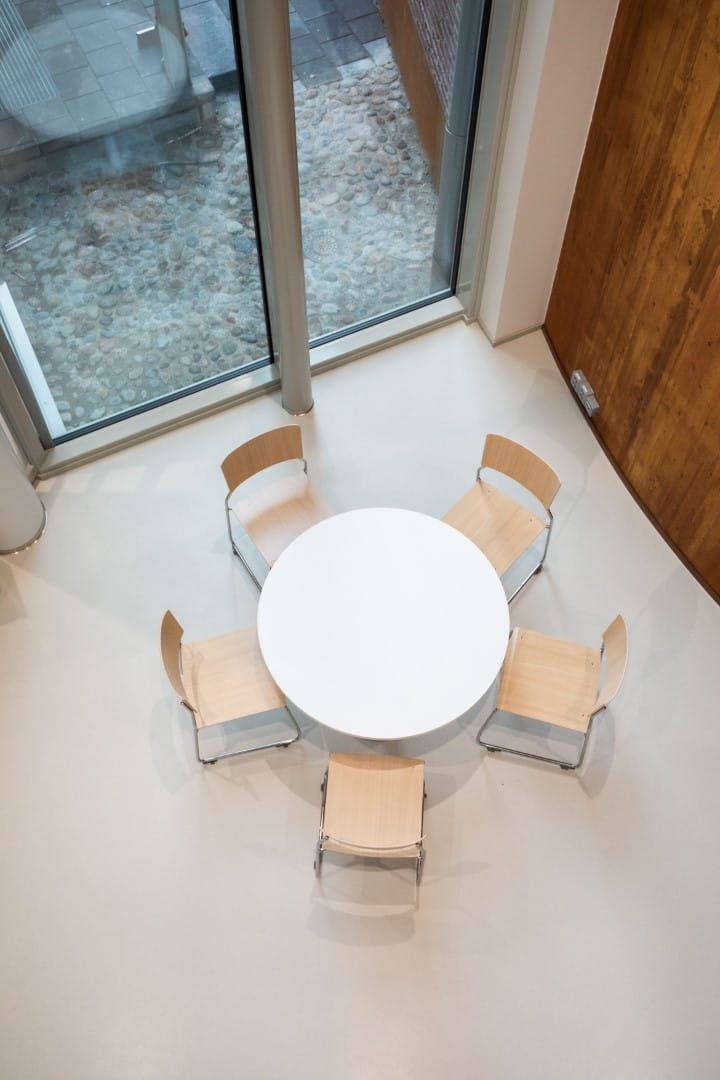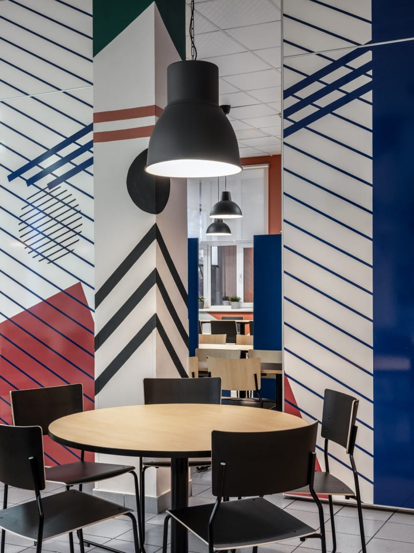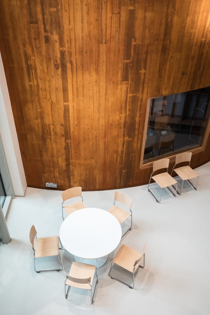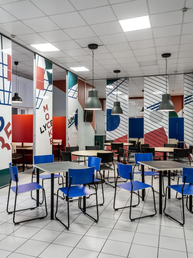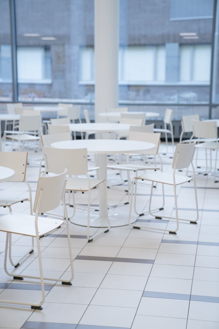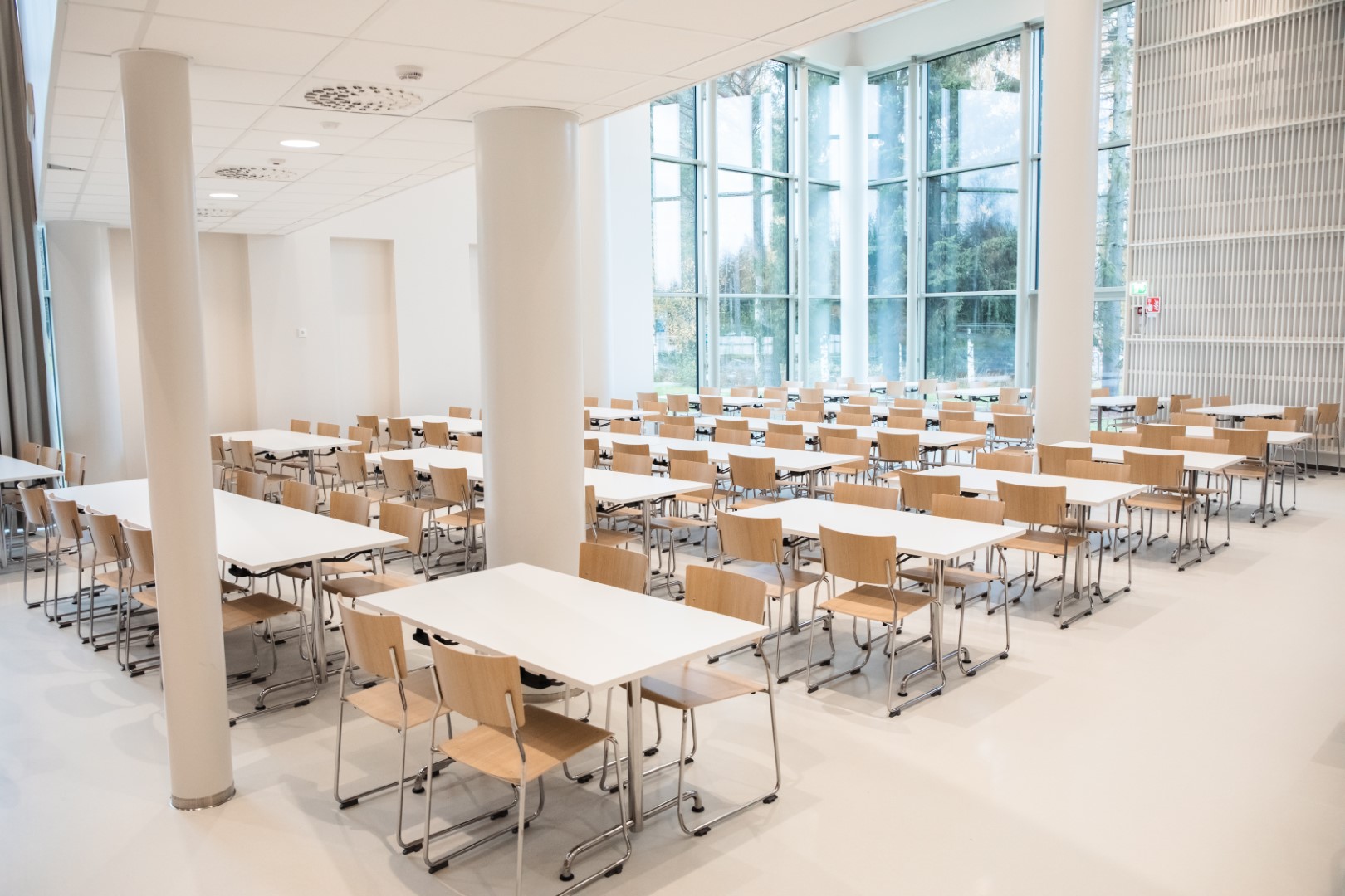 Matti to dobre rozwiązanie dla stołówek, ponieważ można je zawiesić pod stołem, co ułatwia czyszczenie. Krzesła mogą również być łączone w rzędy za pomocą niewidocznego mechanizmu łączącego.