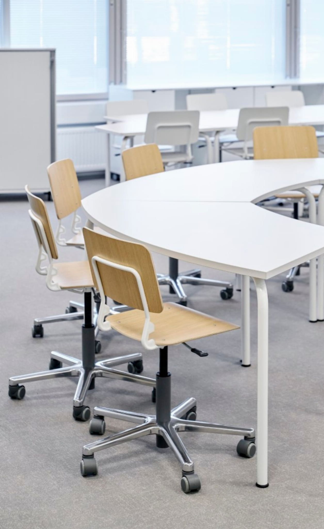 Krzesła Pisa zostały opracowane z naciskiem na funkcjonalność i design. Regulowana wysokość Pisa z podstawą krzyżową jest poręczna i stanowi wybór dla uczniów o różnym wzroście.