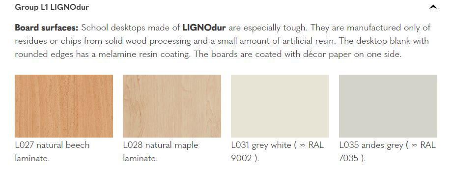 - Dostępne różne wysokości biurka zgodnie z normą DIN EN 1729, dopasowane do wieku i wzrostu użytkowników.