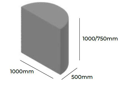 - element oparciowy 1/2 walca na stopkach z tworzywa z regulatorami w dwóch wysokościach do wyboru 750 lub 1000 mm