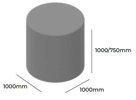 - element oparciowy walec na stopkach z tworzywa z regulatorami w dwóch wysokościach do wyboru 750 lub 1000 mm