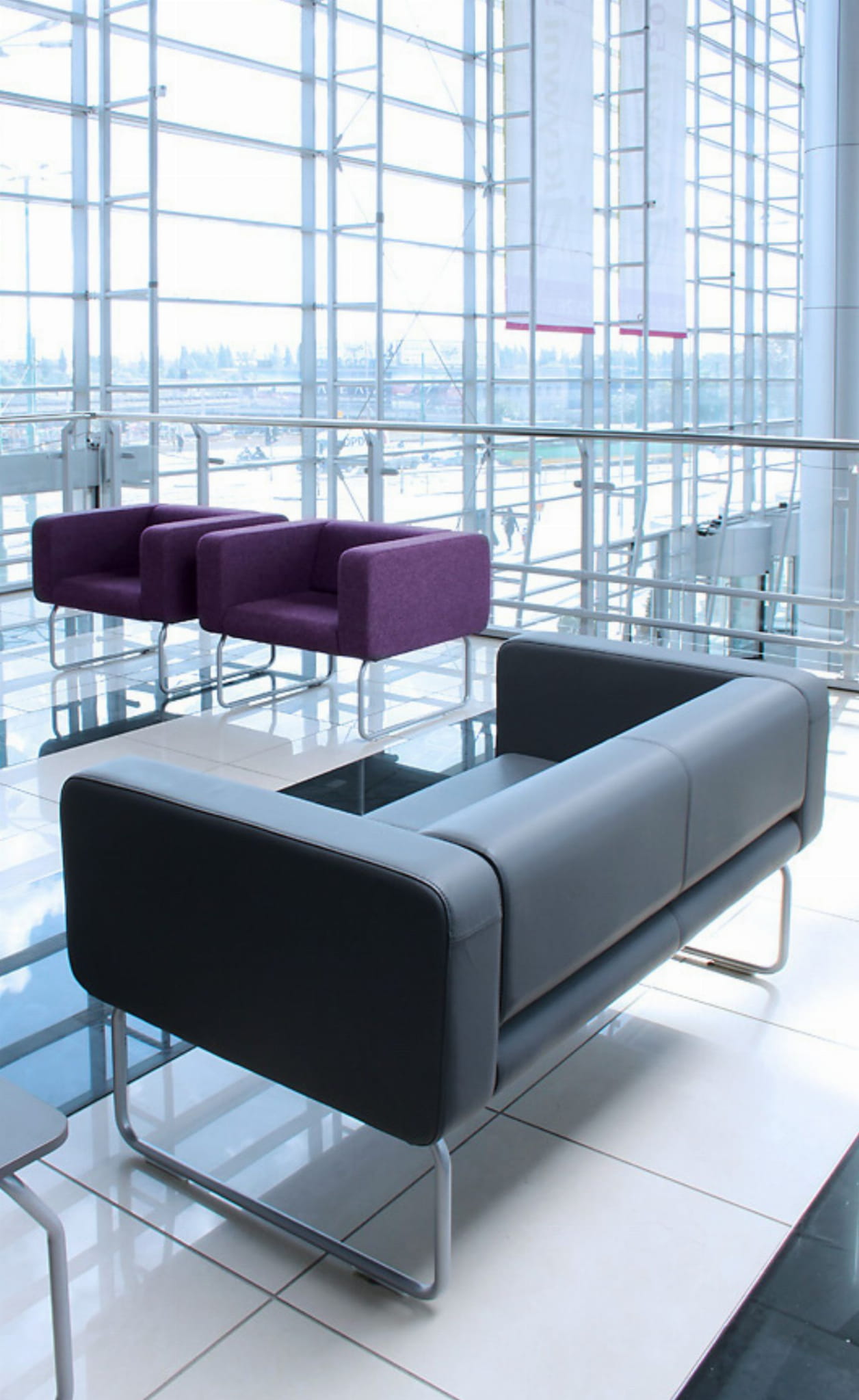 Rozległe płaszczyzny siedzisk i oparć nadają wnętrzu poczucie spokoju, neutralizują napięcia związane z przepływem ludzi we wnętrzach publicznych i ułatwiają pozytywne relacje pomiędzy nieznanymi sobie ludźmi.