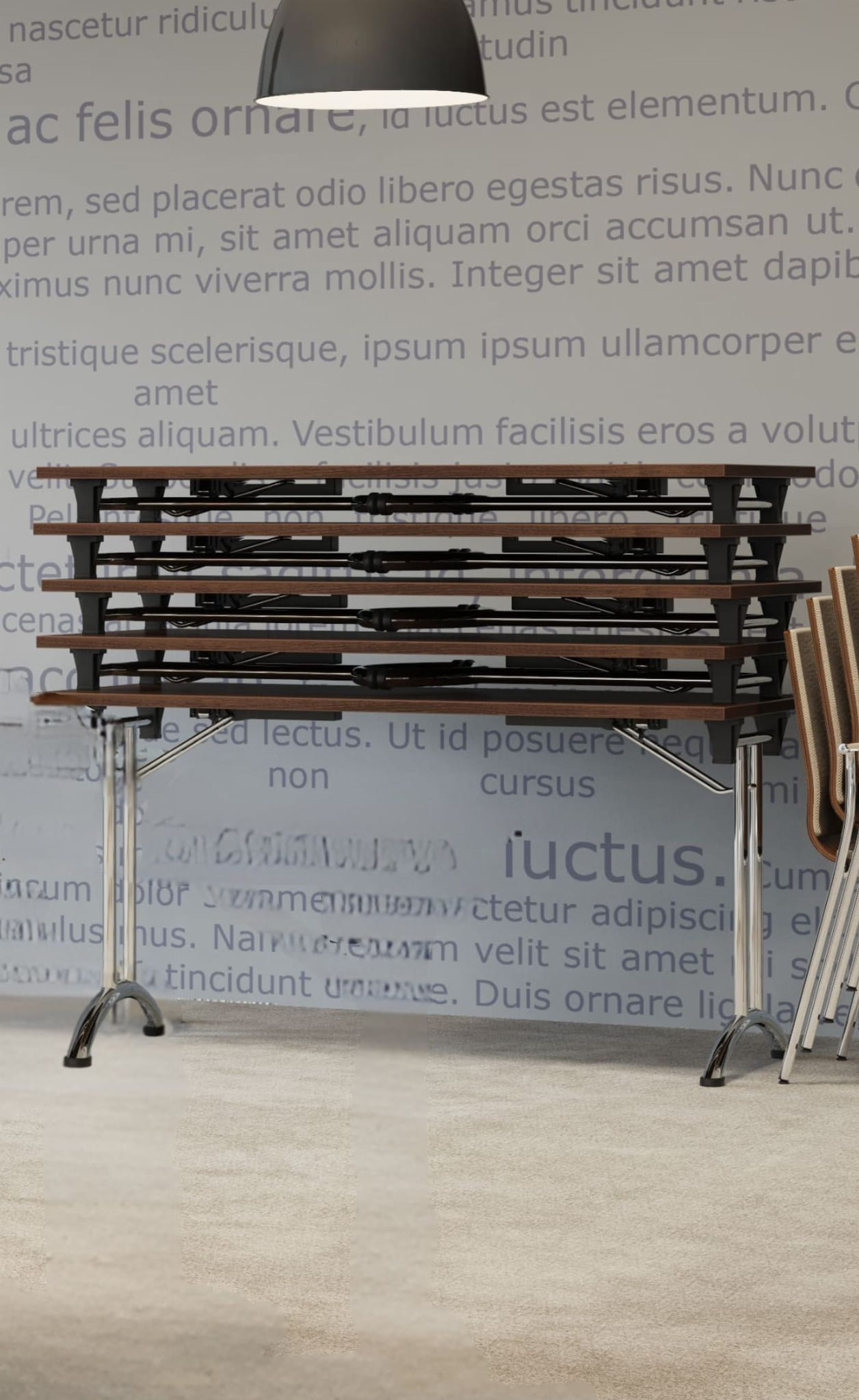 Stoly składane to funkcjonalne rozwiązanie do sal konferencyjnych. Łatwość budowania dowolnych układów, mobilność i lekkość daje możliwość łatwego składania. Stoły składane mobilne umożliwiają dowolne zaaranżowanie pomieszczeń w ciągu kilku chwil. Największymi korzyściami wynikającymi z użytkowania stołów mobilnych jest ich wyjątkowa łatwość w obsłudze, wygoda oraz duża elastyczność w tworzeniu kombinacji ustawienia. Zaaranżowanie miejsca, w którym ma się odbyć szkolenie, zebranie czy krótkie spotkanie robocze jest kwestią kilku ruchów. Stelaż mobilny, składany pionowo pozwala na optymalne wykorzystanie przestrzeni, można go łatwo przesuwać i wygodnie ustawić w dowolnym miejscu po zakończeniu pracy.
