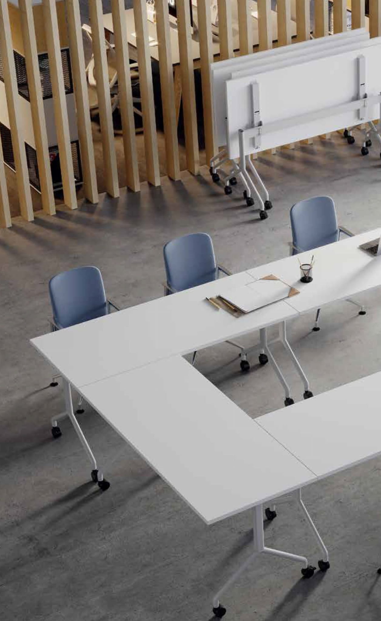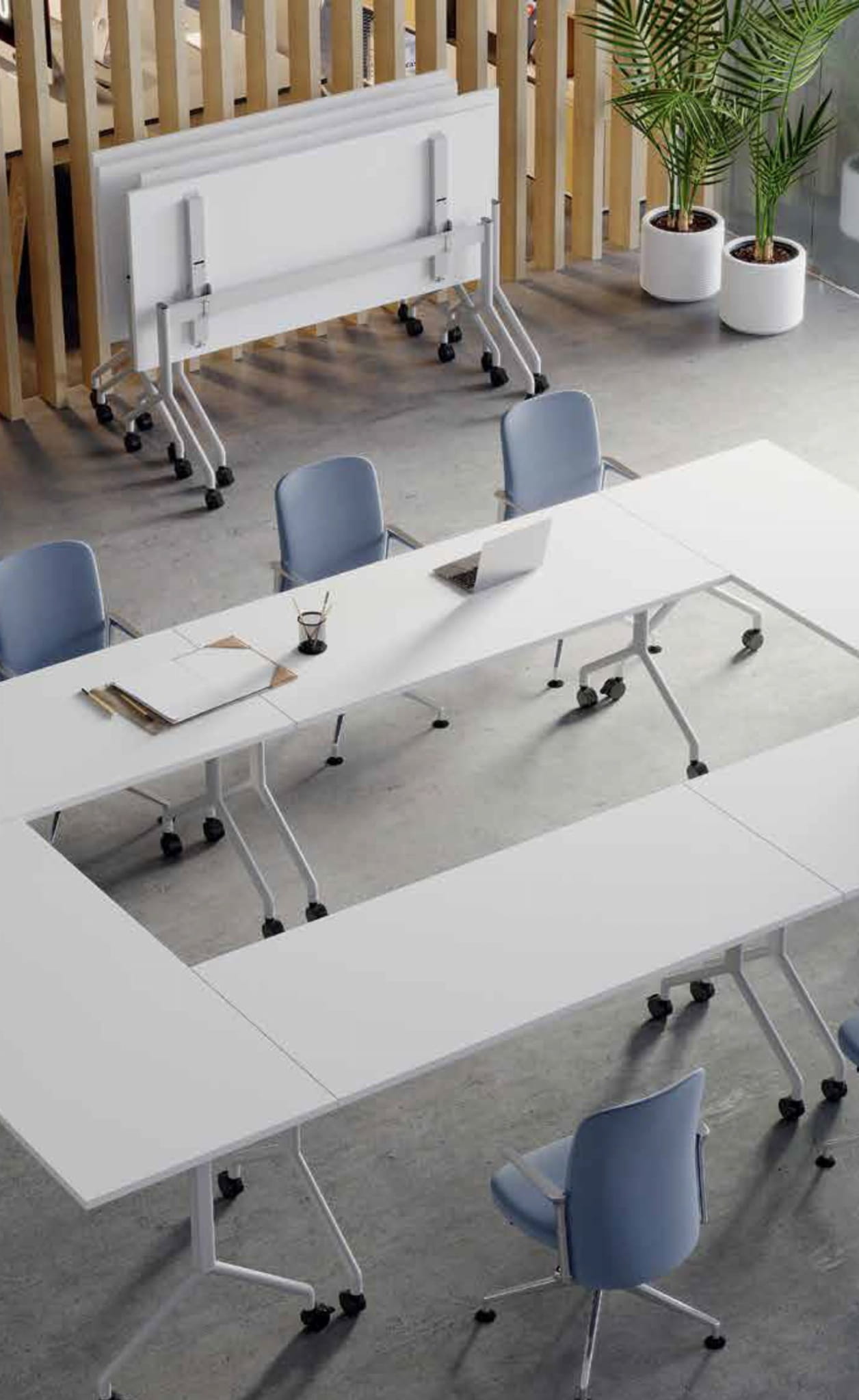 Stoly składane to funkcjonalne rozwiązanie do sal konferencyjnych. Łatwość budowania dowolnych układów, mobilność i lekkość daje możliwość łatwego składania. Stoły składane mobilne umożliwiają dowolne zaaranżowanie pomieszczeń w ciągu kilku chwil. Największymi korzyściami wynikającymi z użytkowania stołów mobilnych jest ich wyjątkowa łatwość w obsłudze, wygoda oraz duża elastyczność w tworzeniu kombinacji ustawienia. Zaaranżowanie miejsca, w którym ma się odbyć szkolenie, zebranie czy krótkie spotkanie robocze jest kwestią kilku ruchów. Stelaż mobilny, składany pionowo pozwala na optymalne wykorzystanie przestrzeni, można go łatwo przesuwać i wygodnie ustawić w dowolnym miejscu po zakończeniu pracy.