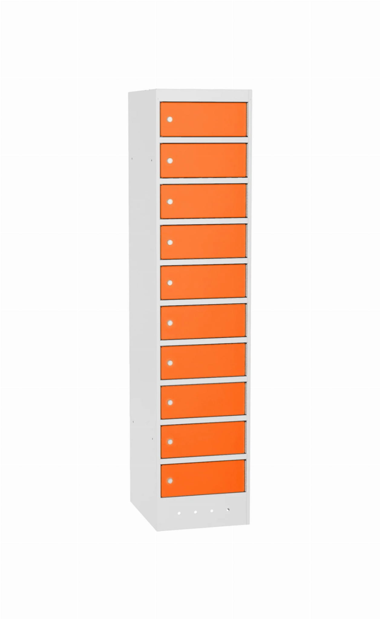 Szafka posiada 10 skrytek, zawartość każdej z nich chronią drzwiczki wyposażone w zamek. Każda ze skrytek wyposażona jest w gniazdo elektryczne 230 V lub inne np. USB.