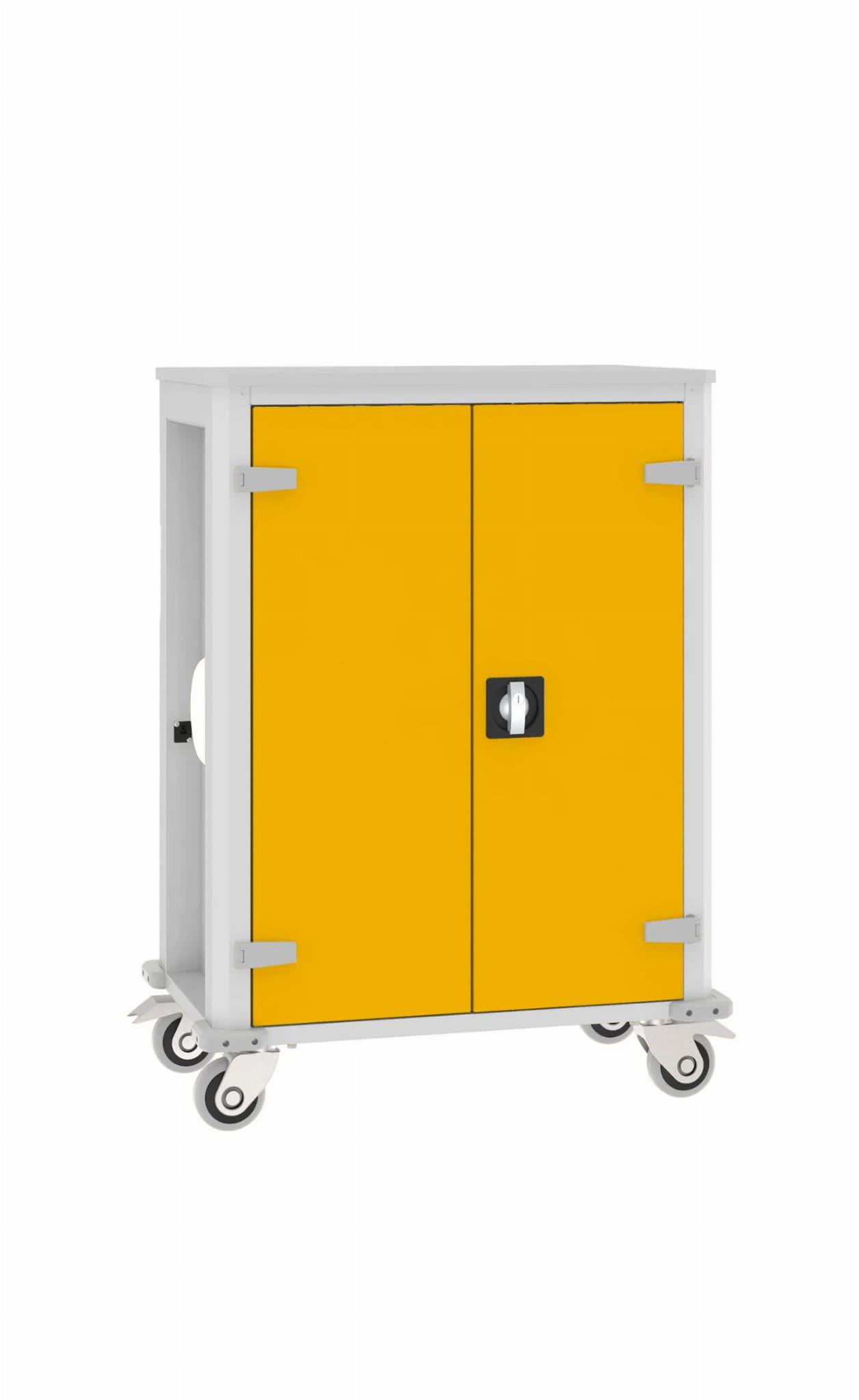 Sprawdza się idealnie w szkołach, na uczelniach, bibliotekach czy salach konferencyjnych, czyli wszędzie tam, gdzie istnieje konieczność bezpiecznego przechowywania i jednoczesnego ładowania tabletów. Zawartość szaf jest chroniona przez drzwi wyposażone w zamek. Przemieszczanie wózka jest możliwe, dzięki 4 skrętnym kołom.