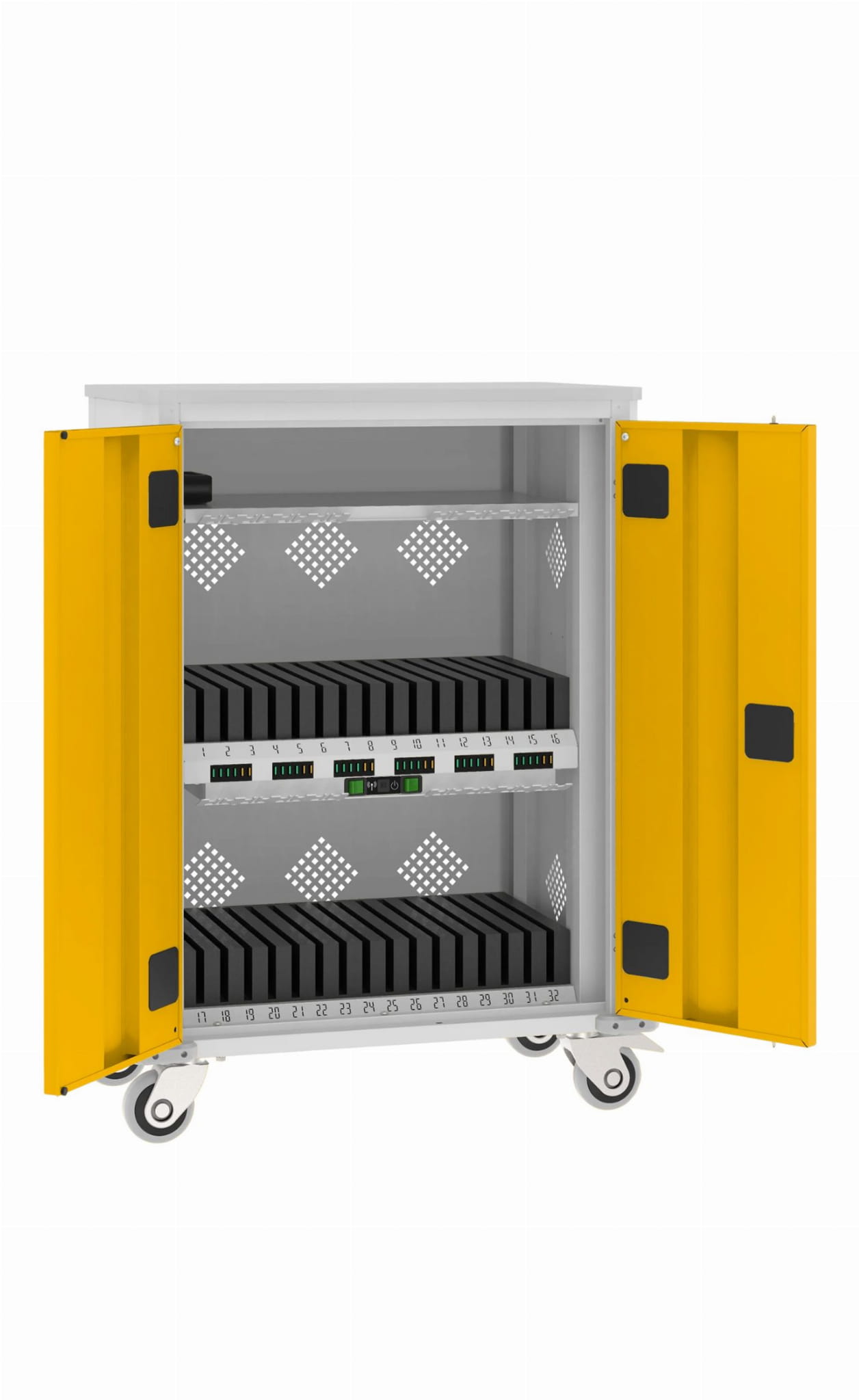 - Ilość skrytek: 32 tablety - 1 laptop