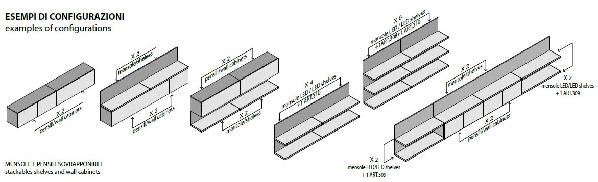 Inne przykładowe konfiguracje wiszących szafek.